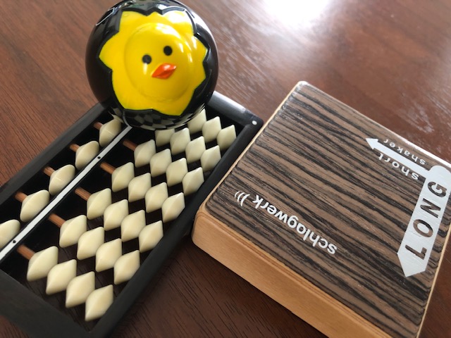 昨夜差し入れにいただいた、かわいいシェイカーたち❣️音色もかたちもいろいろあって、めちゃ楽しいですね😄💕😄