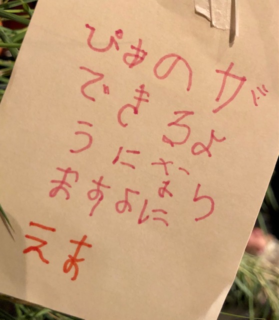 本日最年少のお客さま、えまちゃんのかわいい短冊❣️いつか、連弾しようね😊🎹❤️