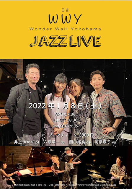 明後日8日夜は、ワンダーウォールにて。配信もありますのでよろしければ😊💕😊 ◆1/8(土)◆夜ライブ 日吉「ワンダーウォール横浜」(045-595-9967)pm6:30〜/7:35〜 www.wonderwall-Yo