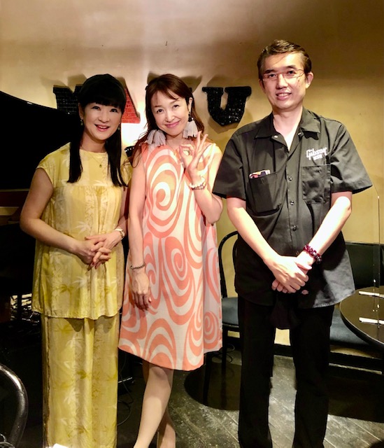 まやさんとバーニーさんとの初トリオ、めちゃめちゃ楽しく弾かせていただきました❣️おふたりの個性あふれるオリジナル曲も、すごく素敵です。暑い中いらしてくださったみなさま、今夜もホントにありがとうございました😊💕😊