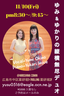 今月後半からのライブもよう、ほんのり更新いたしました❣️年内は広島、島根、群馬、茨城、福岡などにも伺う予定です。あちこちで、たくさんの方々とお逢いきるのを楽しみにしていますね😊🚃😊🚃😊 www.inoueyukari.c
