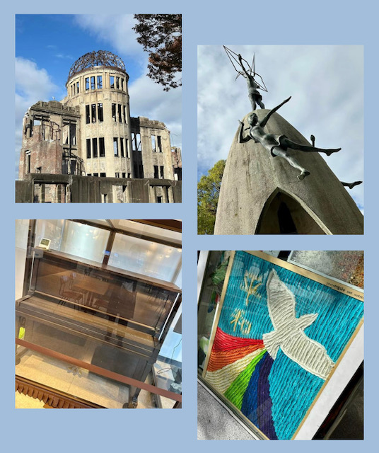 原爆ドームと被爆ピアノ。争いの日々が、早く終わりますように。