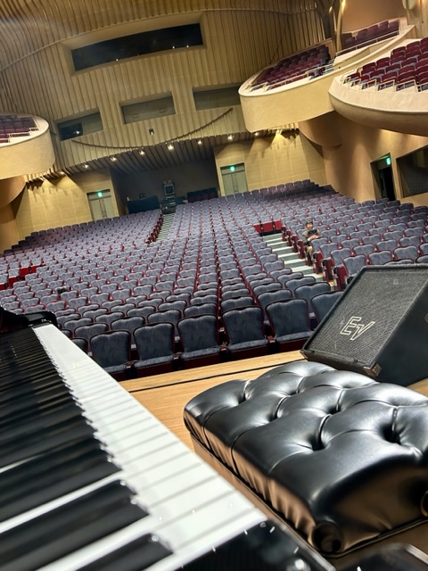 まもなくステージ❣️お久しぶりに弾かせていただく「悠邑ふるさと会館」のスタインウェイ、とても艶やかな音色です😊💕😊