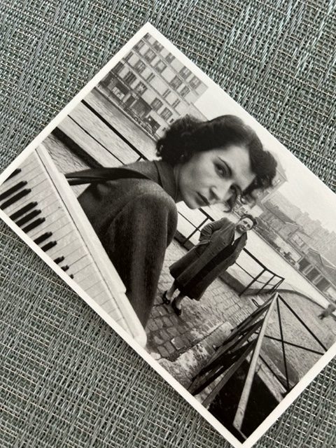 差し入れにいただいたドアノーさんの写真。70年前のパリに生きていた、アコーディオン弾きのピエレットさんの眼差し、なんかいいなぁ😊🌿😊