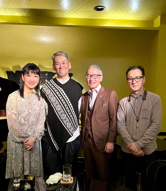 とってもお久しぶりなお三人、ヒロヤスさんと浩さんと幹雄さんとのひととき❣️あたたかいお客さまに囲まれて、めちゃ楽しく弾かせていただきました。小雨降る中、山陰や関西など遠くからもいらしてくださったたくさんの方々に、今夜も心
