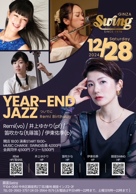 今週末28日は銀座「スウィング」につあ、Remiちゃんとかなちゃんと佑季ちゃんと❣️2024年のラストはRemiちゃんのバースデーステージ、たくさんの方々とご一緒できますように😃⭐️😃 ◆12/28(土)◆ 銀座「スウィ