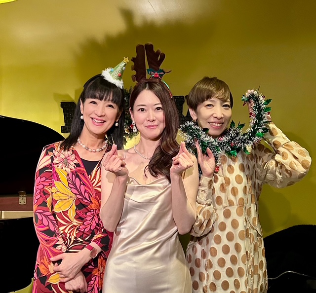 NAOKOちゃんと康恵ちゃんとのクリスマスなステージ❣️満席のお客さまのあたたかな空気感のなかで、とってもハッピーに弾かせていただきました。遠くは東北などからもいらしてくださったみなさま、今夜もありがとうございます。紀ち