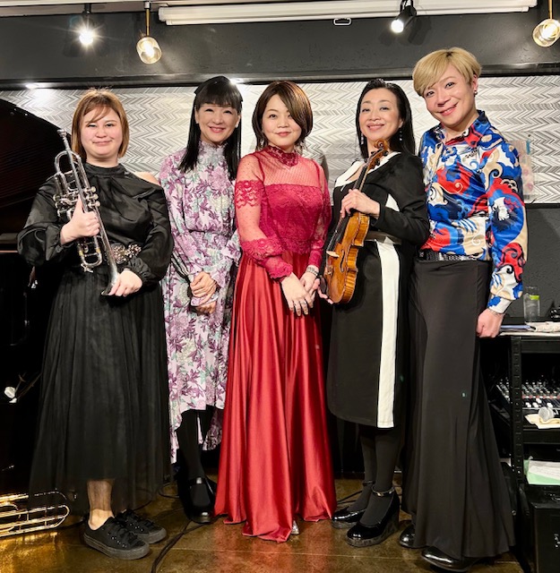 神楽坂『おむすびジャズ』にて、千穂ちゃんと紀ちゃんと幸華ちゃんとササミーちゃんとのステージ❣️外の寒さをすっかり忘れて、ジャズもラテンもポップスも日本の歌謡曲も、めちゃくちゃ楽しく弾かせていただきました。ご一緒できたみな