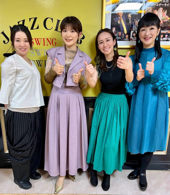 銀座「スウィング」にて、Remiちゃんとかなちゃんと瞳ちゃんとの3回めなステージ❣️個性あふれるアレンジや素敵なオリジナルたち、今夜もめちゃワクワク楽しく弾かせていただきました。ぎっしり詰めかけてくださったたくさんのお客