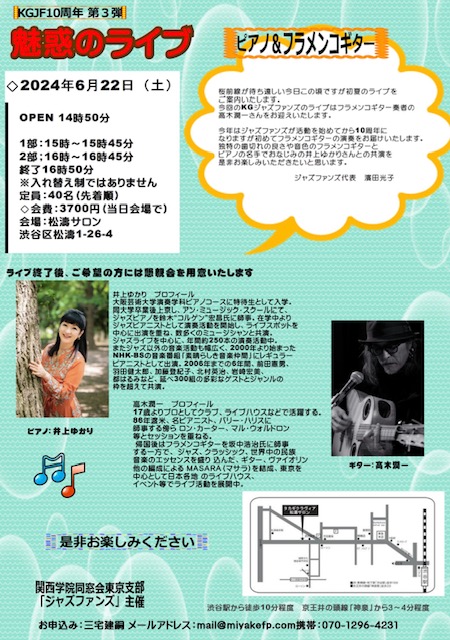 6/22「松濤タカギクラヴィア」での高木潤一さんとのステージは、おかげさまで現在ほぼ満席のご予約をいただいているそうです。お席のお問い合わせは、主催の三宅さんまでどうぞよろしくお願いいたします😊💕😊 ◆6/22(土)◆