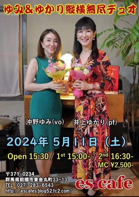 11日の群馬「エスカフェ」での、ゆみゆかりライブは、中止となりました。ご予約いただいた皆さま、大変申し訳ありません。次回は、11/16に開催予定ですので、どうぞご了承下さいませ🙏🙇🙏