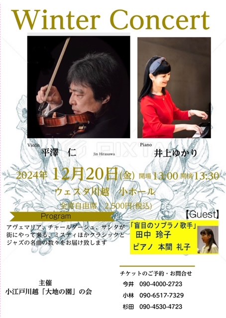 クラシックのバイオリニスト平澤仁さんからお誘いいただき、この冬12/20超お久しぶりにご一緒させていただくことになりました❣️ 以前にテレビ音楽番組や学校公演などで、何度か共演させていただいた名手の艶やかな音色、ゲストの