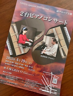 4/19に大塚「グレコ」で再びお届けする、進藤陽悟さんとの2台ピアノ❣️今回もたくさんのフライヤーをお届けいただきました。いつもステージを陰ながら支えてくださっている方々にも、心から感謝です😃⭐️😃 ◆4/19(土)◆「