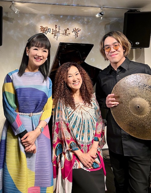学芸大学「珈琲美学」にて、深絵さんと幸作さんとの本日初トリオ❣️スケール無限大な深絵さんのオリジナル世界観、お二人とめちゃ楽しく弾かせていただきました。深絵さんとはなんと同じ高校出身だったり、幸作さんのパパ(ホンジャマカ