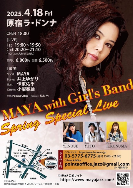 4/18に出演させていただく原宿「ラドンナ」でのステージ、お席はあと半分だそうです。よろしければお早めにどうぞ😊🙏😊 ◆4/18(金)◆ 「MAYA Spring Special Live!」 原宿「ラドンナ」(5755