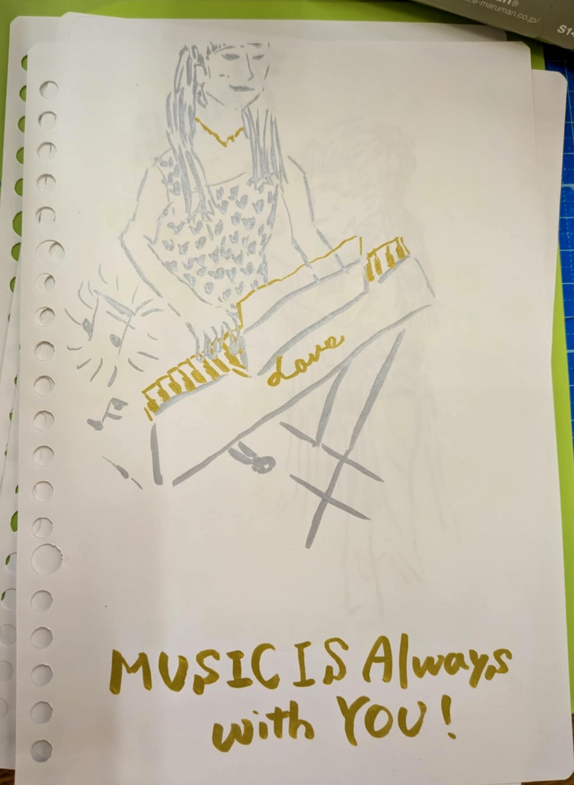 演奏聴きながら、お客さまがさらさらーっと描いてくださった一枚❣️ 曲目を丁寧にメモする方。 静かに目をとじている方。 せっせと絵を描く方。 黙々と飲んでいる方。 聴き方もみなさんそれぞれで、 楽しいですね😃🌟😃