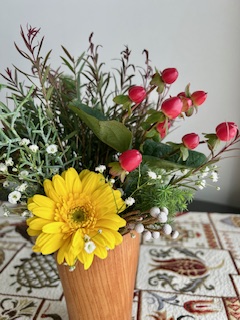 お久しぶりにお会いできた方からいただいた、手作りのミニブーケ❣️ハーブの薫りがとても素敵、あたたかいお心遣いをありがとうございます😃☘️😃