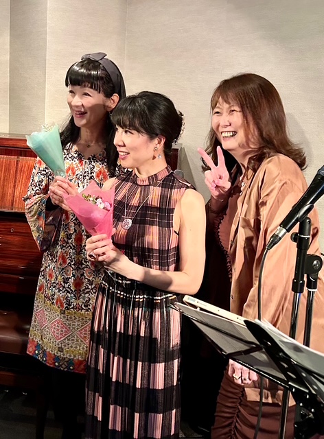 雅子さんと孝一さんと遊一郎さんとの本日初組み合わせなステージ❣️外の寒さをちょっと忘れて、ほっこりあたたかい時間になりました。雨の中いらしてくださったたくさんのみなさま、今夜も心からありがとうございます😃🌸😃