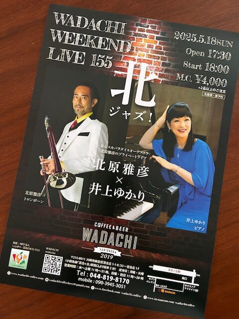 来月5/18は百合ヶ丘『轍』にて、スカパラの北原雅彦さんと❣️昨年手首療養中でご一緒できなかったリベンジのステージ、超お久しぶりにどうぞごゆっくり😃🌸😃 ◆5/18(日)◆『北ジャズ!』 百合ヶ丘「轍」(044-819-