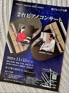 進藤陽悟さんとの『2台ピアノコンサート』、次回は11/15にお届けいたします❣️毎回ご好評いただく、ステージ&懇親会のゆったり時間。今回もどうぞごゆっくり😃🌟😃 ◆11/15(土)◆ 「2台ピアノコンサート」 大塚「グレ